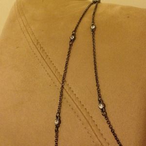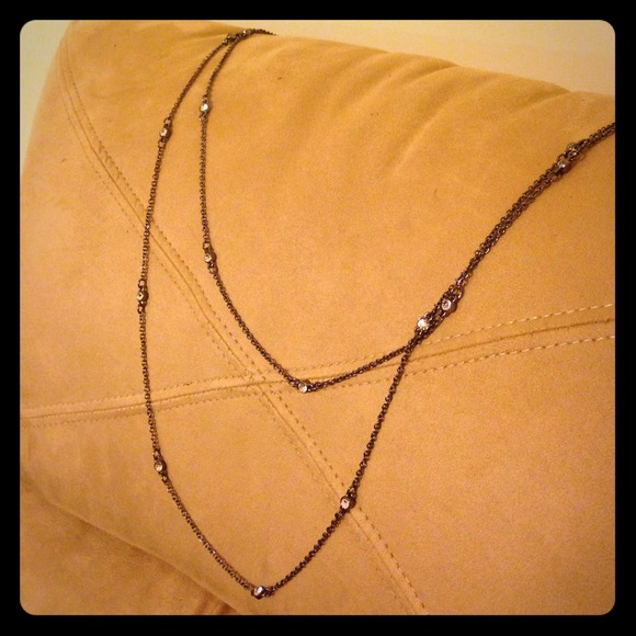 Gorgeous gunmetal double stranded necklace with rhinestones. Adds just enough sparkle to any outfit. Simply dazzling dahhhling:)