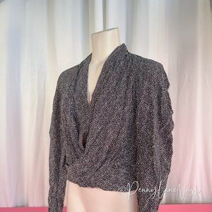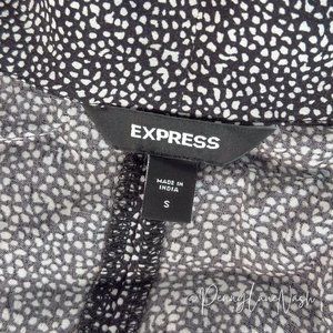 Express Draped Printed Faux Wrap Front Blouse Top Black/White