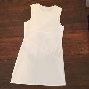 Express dress size 3/4. Material is 90% Nylon, 10% Spandex. Measures 16" across from armpit to armpit, 32" from top of shoulder to bottom hem, 21.5" across bottom hem laying flat. A few loose threads in hem as shown in last pics. No trades or modeling. Bundle to save!