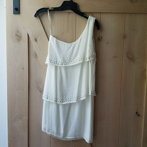 Gorgeous one shoulder neckline with gold studded design accent party dress. Perfect condition, only worn in one occassion! Polyester material.