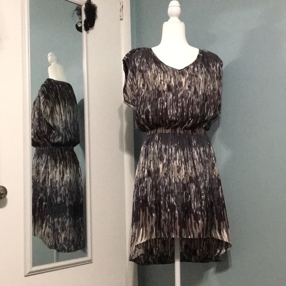 Fun gray print Express dress, worn once. Super comfortable elastic waist.