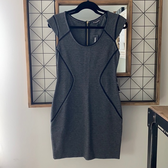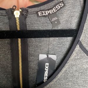 Dark gray Express dress with black detail. Gold zipper up back. Brand new, with tags.