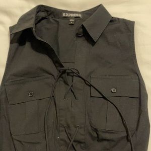 Express dress // Size 0 in Black // front lace to waist, belted waist // Lightweight cotton // Excellent condition