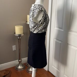 Black and White Leopard print Dress size Medium with side zipper and stretch skirt. Perfect under a blazer for the office or sexy enough for a night out. Brand New with tag