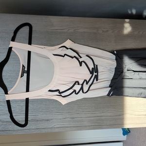 Express Powder Pink and Back Dress with tie around waist. Lightweight, breathable material. Perfect for summer