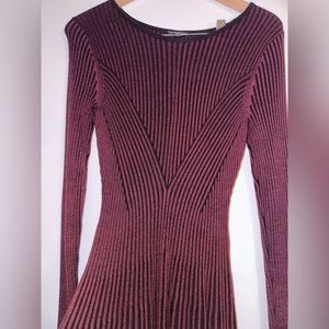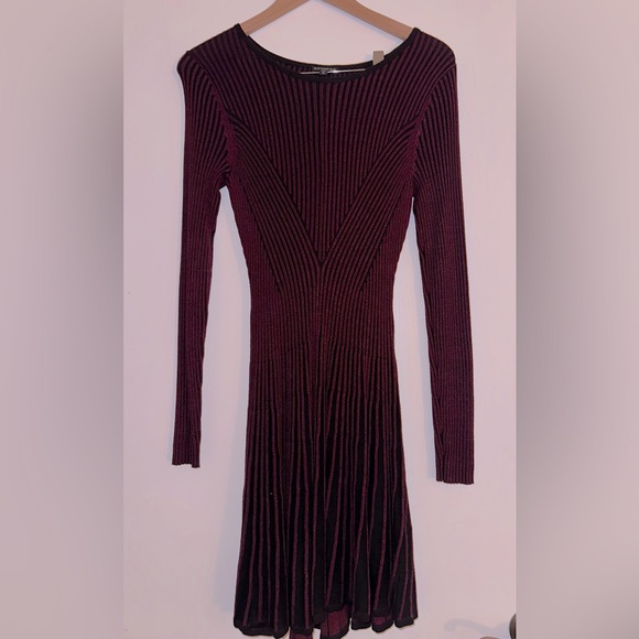 Knee length, looks cute with tall boots! Size Small Burgundy with black