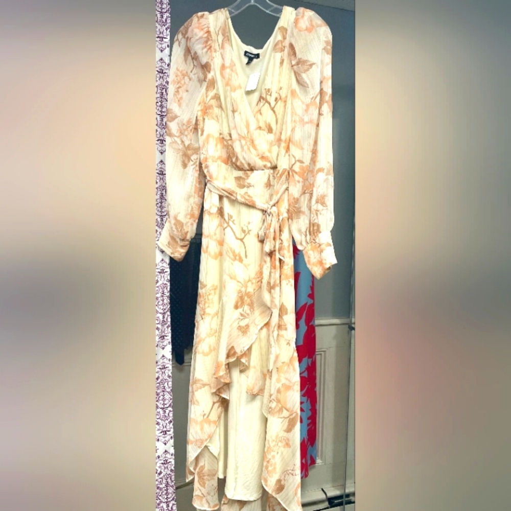 Orange Brown and Gold floral Express Dress, Size medium....NWOT