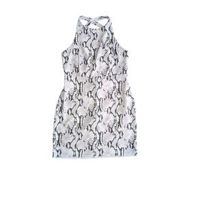 Express Dress L Womens Black White Snakeskin Strappy Open Back Bodycon High Neck
