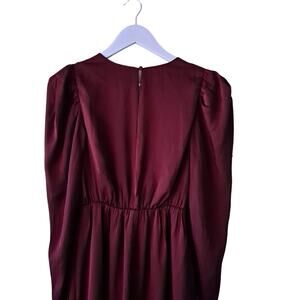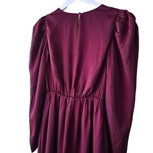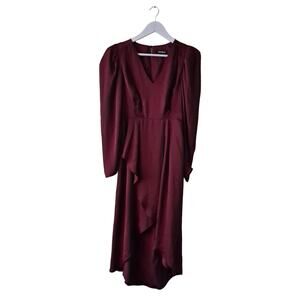 Express Dress Long Sleeve V Neck Wrap Ruffle Hi Lo Maxi Burgundy Red Size XS