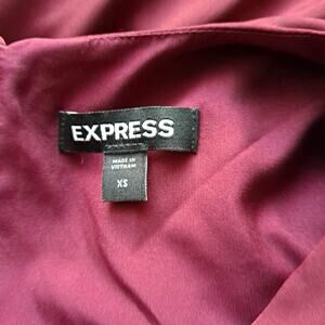 Express dress, evening, cocktail, fancy, wedding guest, dressy, formal, special occasion, party, date night, going out, club, sexy, bachelorette, bridesmaid, feminine, ruffles, garden party, romantic, girly, flouncy, flounce flowy, minimal, minimalist, minimalistic, simple, maroon, cranberry, wine, burgundy, merlot, plum, purple-red
