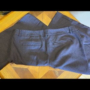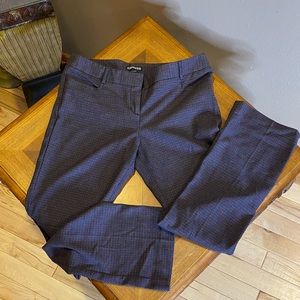 Express Dress Pants. These are really comfortable & complimentary to the figure. Quality material, these pants will last a long time. The pictures make these have a more gray vibe but in person the overall color you really see when looking them is a dark purple color. They’re unique & pretty. Like new condition.