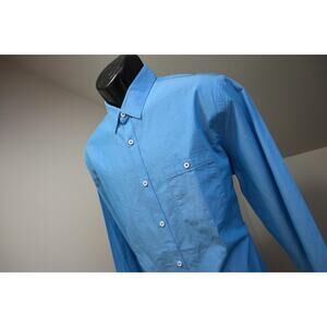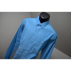 Express Dress Shirt Fitted Blue Casual Button Up Long Sleeve Mens Sz Large