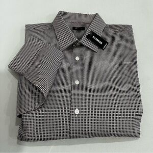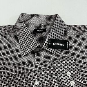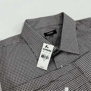 New, Express Dress Shirt Size Medium Slim Button-Up Patterned Geometric Burgundy/White, Long Sleeve.