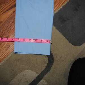 Light blue colored dress pants from Express. These are quite stretchy. They run on the skinnier side, with the legs being close to skin tight, so not a straight leg style.