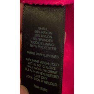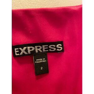 This sleek bodycon dress by Express is crafted with a comfortable and stretchy rayon and nylon blend. Its vibrant pink hue and sleeveless design make it suitable for a variety of settings, from professional to social gatherings, providing both style and comfort.