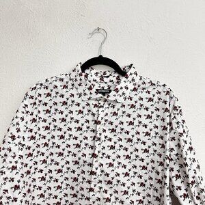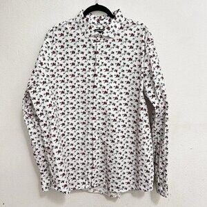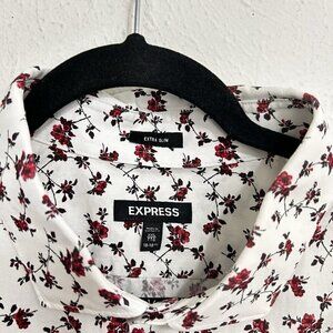 Express Dress White Floral Shirt Men's XXL 18-18 1/2 Extra Slim Fit Button Down