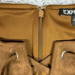 Express Dress - Lace Up Neck - Faux Suede - Camel - Mini - Zip Up Back - Western - Rodeo - Country - Party -