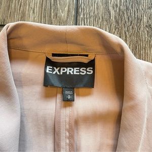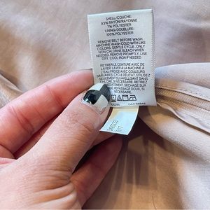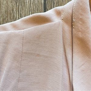Worn once. There is a small stain on shoulder that is pictured. The color is like a dusty light mauve. There are tie details on the wrists of the sleeves. Also has a tie back detail.