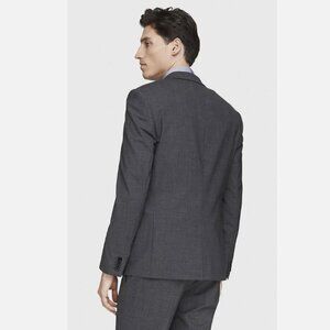 Express Size 40R Men's Photographer Fitted Blazer Jacket. Excellent used condition with no callouts. Textured charcoal gray look. Cut slimmer through the shoulders, chest and waist. Notch lapels, two button front. Features a ticket pocket and two flap hand pockets.
