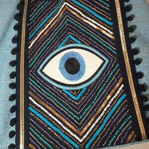 Elevate your accessory game with the Express Edit Blue Embroidered Eye Tote, a stylish blend of practicality and artistic flair. Crafted from durable materials, this tote features a striking embroidered eye design that adds a touch of mystique and sophistication.