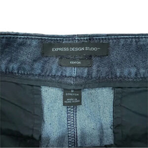 {Express} "Editor" Black Sequin Waist Band Relaxed Bootcut Flare Denim Trousers
