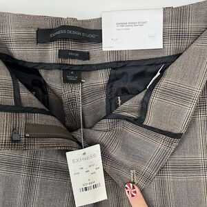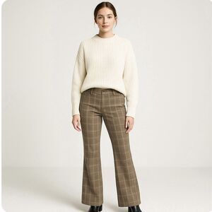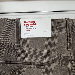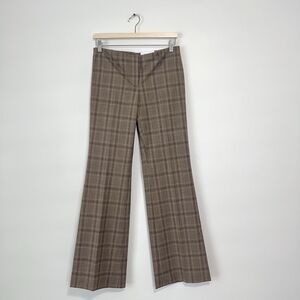 Express Editor Flare Leg Trouser Low Rise Sexy Waist Plaid NEW Size 4 Tan Brown