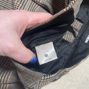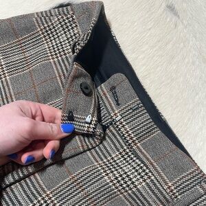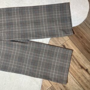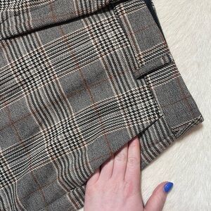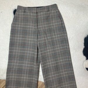 Pattern & Color: They feature a neutral grey glen or mini plaid (checked) pattern, which adds a sophisticated touch suitable for both work and casual settings.