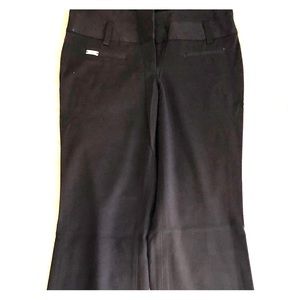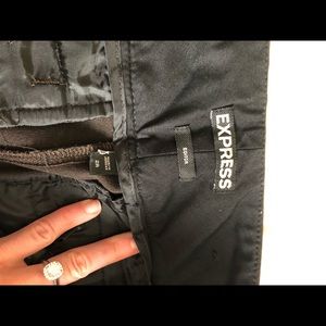 Black Express Editor pant. Gently used. Material has some nice stretch. These also have a nice wide waistband with a belt-like detail. The seam of the left cuff has fallen out (show in picture), but can be easily fixed with some fabric tape.