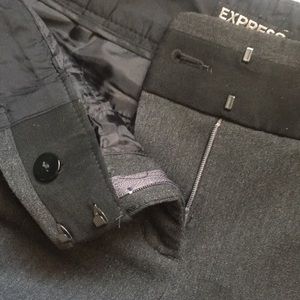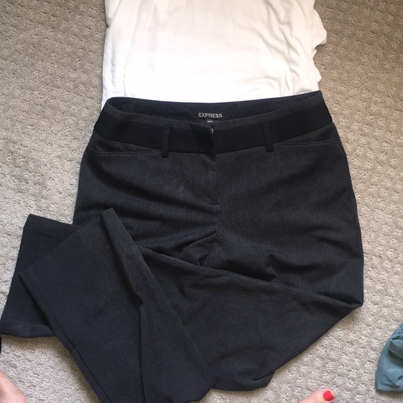 Express. Editor. Grey with black band. 4 short. Good Condition. Slight distress (see photo) in crotch area. Inseam: 29 inches. Barely Boot.
