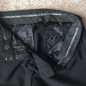 Black Express Editor Pants. Fair condition, bottoms have some fraying