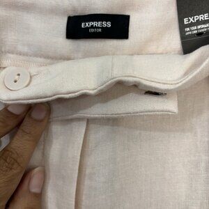 Express Editor Relaxed Trouser Mid Rise Linen Blend Pink Size 0 old money look