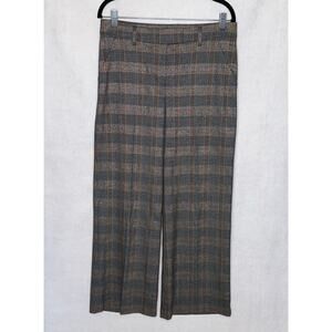 Express Editor Women's Metallic Plaid Trouser Pants Gray Brown Gold Size 8