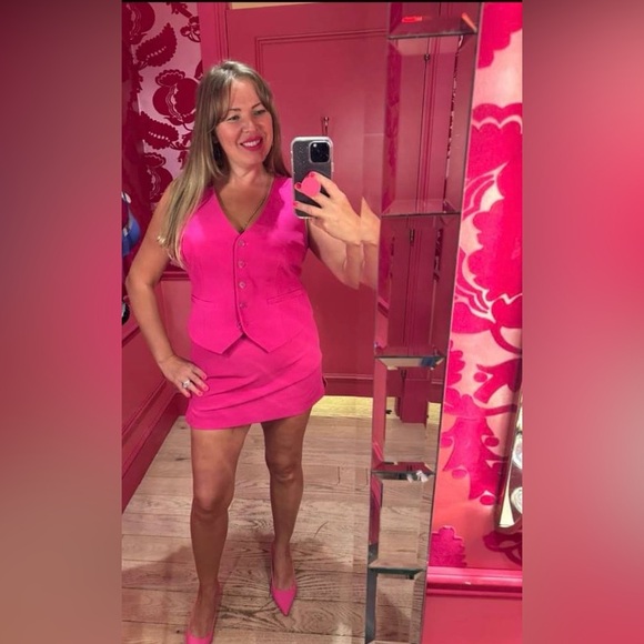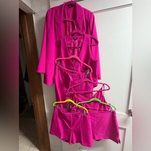 Stylish vibrant pink suit set including blazer sz L, vest sz L, pants 12R, shorts 12, skort sz 10 and Express top sz L. Perfect for a bold statement. Entire EXPRESS EDITOR collection.