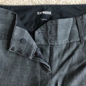 Women’s Editor style pants from Express. Great condition. Color is like a charcoal gray, With a pinstriped design that you can see close up. Great condition, picture does do it justice. Pants no longer fit or I would keep them. I believe these are the boot-style cut at the bottom.