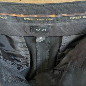 Express classic Editor pant. Boot cut. Black. 4 pockets. Hook and eye zipper front closure. Inseam 31” length 40.5” EUC. Just dry cleaned. 64% polyester / spandex / viscose