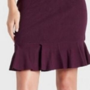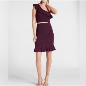 Express Eggplant Purple Ruffle Hemline Bodycon Ribbed Knit Pull-on Sweater Skirt