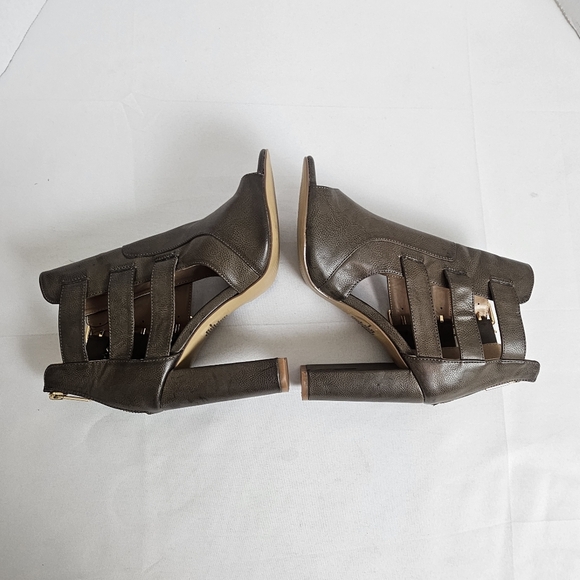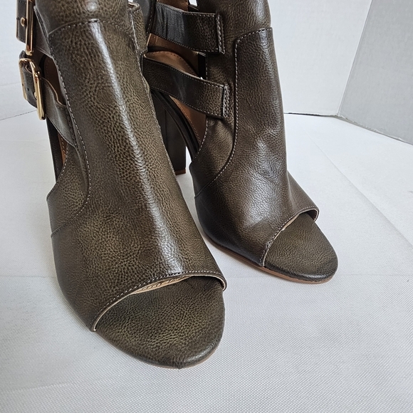 Express Elegant Buckle Brown Peep-Toe Heeled Booties