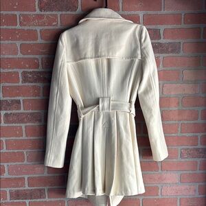 Express Elegant Cream Double-Breasted Women's pleated Wool Coat