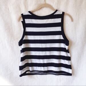 DESCRIPTION: Soft and sporty-cute, this cropped striped tank combines a smooth jersey body with sparkly neckline embellishment in a floral motif. Slip it on over a pair of jeans to add sweet shine to your casual look.