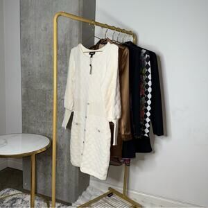 Express Embellished Button Front Mini Sweater Dress in Ivory/Off White