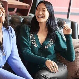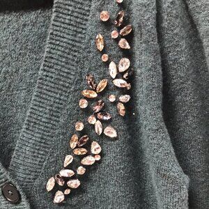 This faux button-up sweater is the best way to dress up your outfit. The rhinestones around the neckline bring enough attention to elevate any outfit.