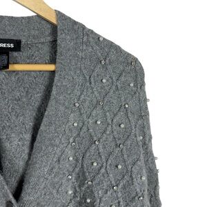 Express Embellished V-Neck Balloon Sleeve Cardigan in Grey Size XS