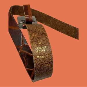 Express Embossed Genuine Leather Dark Light Brown Belt 1” W x 35.5” L Size M