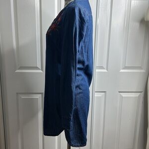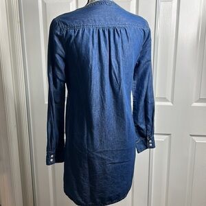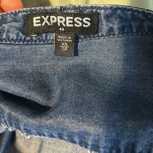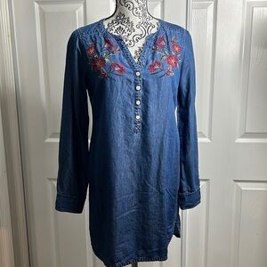 Express Embroidered Blue Pullover Button Dress XS V Neck