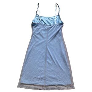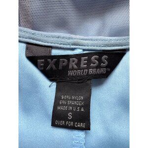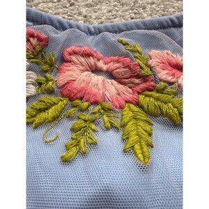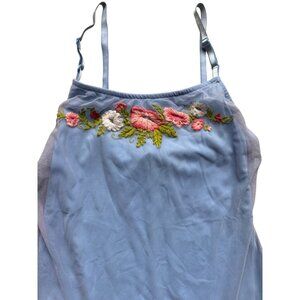 Express Embroidered Floral Slip Dress S Blue Nylon Mesh Overlay Adjustable Strap