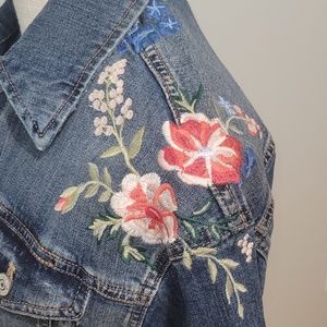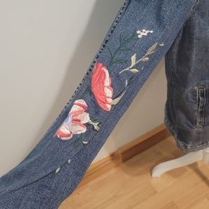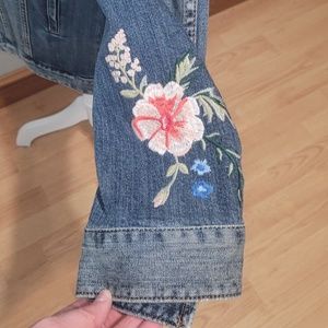 Brand new. 2 side and 2 front pockets. Pretty embroidery on both sleeves.