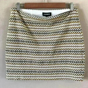 Express Embroidered Mini Skirt Sz Medium Yellow Black Stretch Mini Skirt