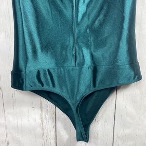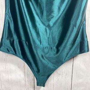 Express Emerald Green Satin Bodysuit Cowl Neck Sleeveless Size M Holiday Glam