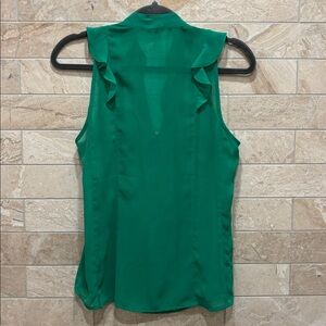 Chic sleeveless blouse with cascading ruffles. Vibrant emerald color. Ideal for versatile styling.