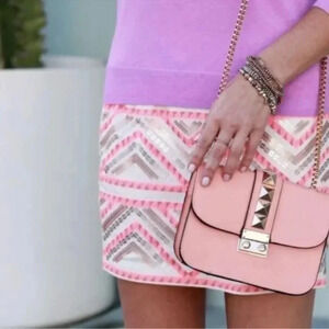 Express | Eras Tour Vibes Pink Sequins Boho Mini Pencil Skirt Size XS